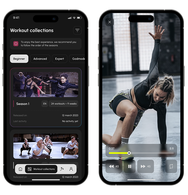 Easy-to-follow, motivating workouts for every fitness level. Progress quickly, enjoy each session, and make training part of your daily routine – all set to energizing music for maximum flow and fun